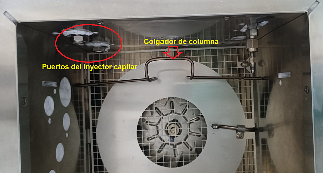 - Con el GC apagado abrir la puerta del horno para ubicar el inyector.